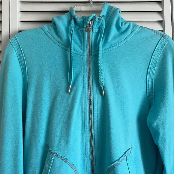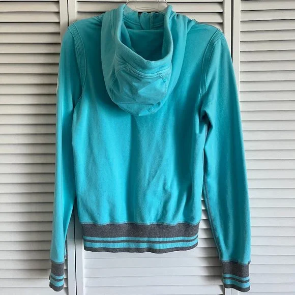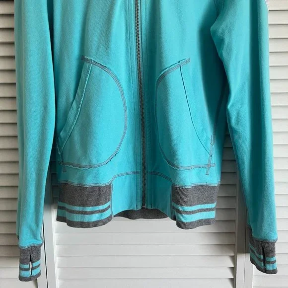 Full zip hooded jacket Full zip hoodieHas thumbholesHas pocketsRibbed cuffsGrey stripes on cuffs & waistbandRaw edge seamsLogo zipper pullHas a drawstring - one says lululemon & the other says athleticaEmbroidered logo on one sleeveCotton French Terry Great conditionSmall spot on one sleeve of the jacket - not noticeable when wearing A few tiny spots on the back of the same sleeve of the jacket - not noticeable when wearing Hard to findHighly sought after Tags: lululemon, lululemon athletica, athleisure, athletic, activewear, sportswear, exercise, jacket, hooded jacket, full zip jacket, full zip hooded jacket, hoodie, full zip hoodie, thumbholes, pockets, ribbed cuffs, raw edge seams, logo zipper pull, drawstring, embroidered logo, stripe, Cotton French Terry, stripe jacket, stripe hooded jacket, stripe full zip jacket, stripe full zip hooded jacket, stripe hoodie, stripe full zip hoodie, women’s lululemon, hard to find, highly sought after, rare, Barbiecore, Mother’s Day