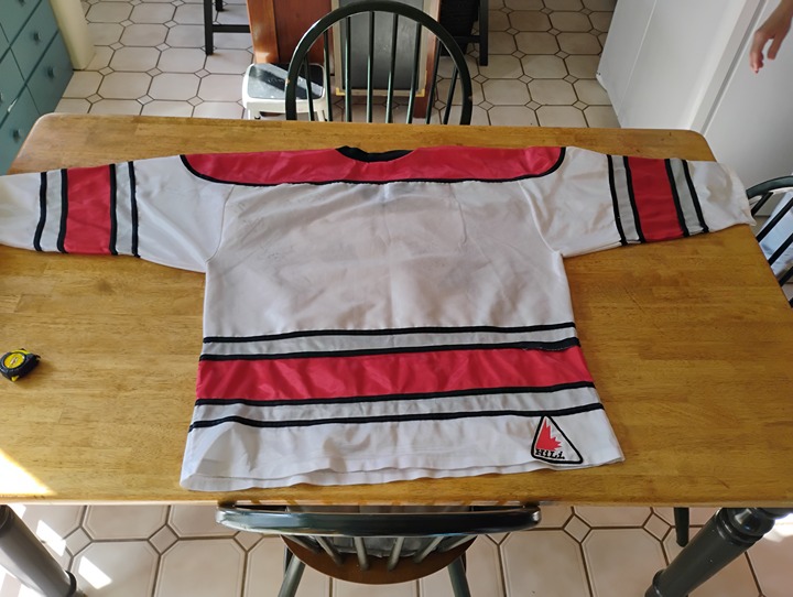 A Vintage Cyclones Jersey. Unisex. XL. Hili branded. Some small flaws such as issues with a few stitching areas, some autographs on back but due to age & use it has been worn so writing is not as bright as it used to be. Unsure of players names. 100% Polyester. 60 inches arm to arm. 30.5 inches top to bottom. 24.5 left to right on stomach.