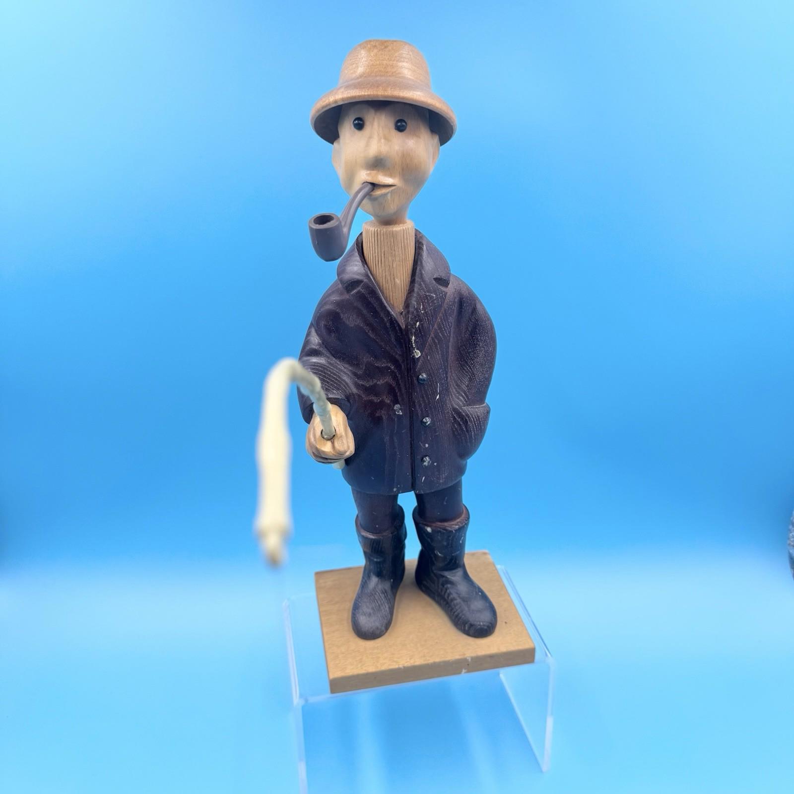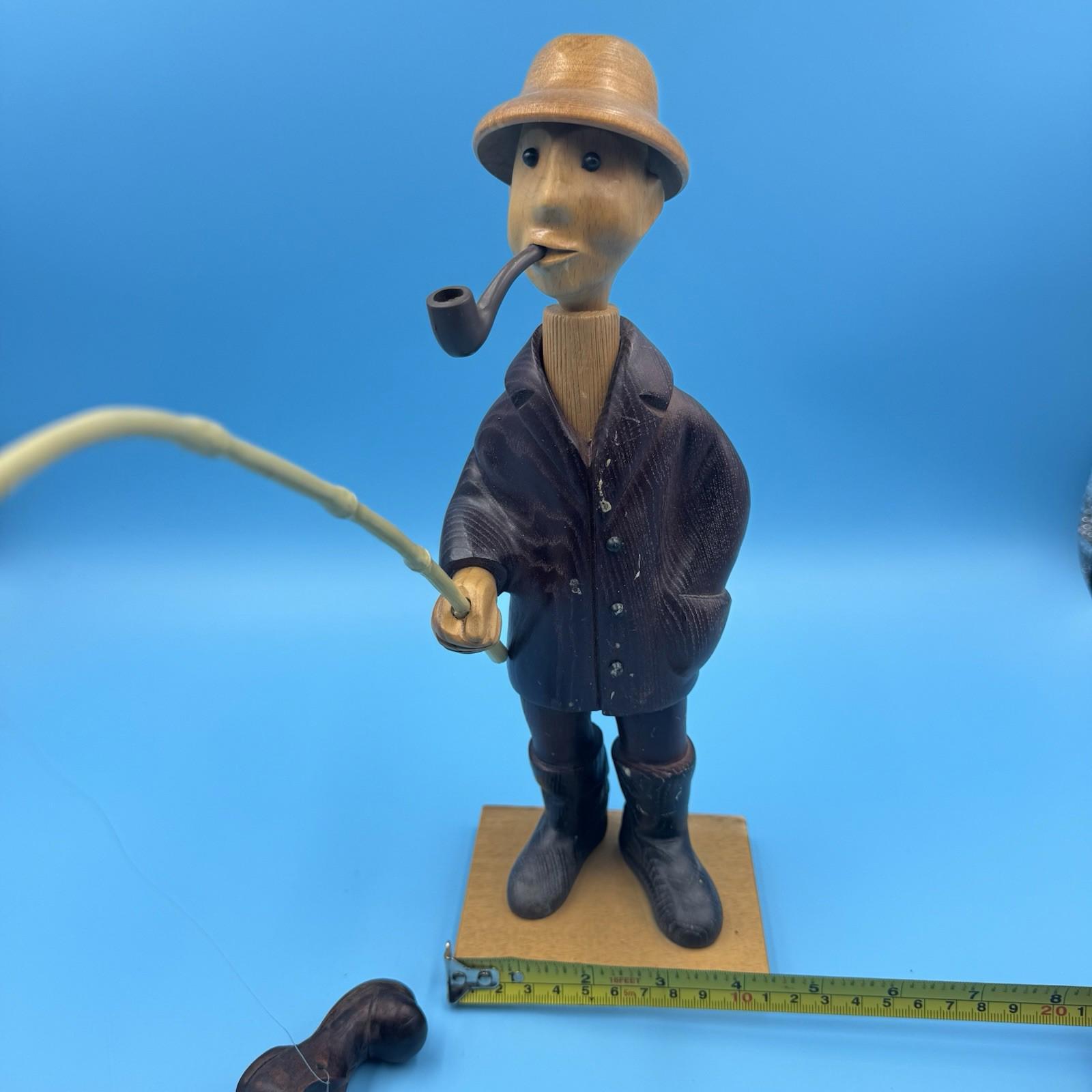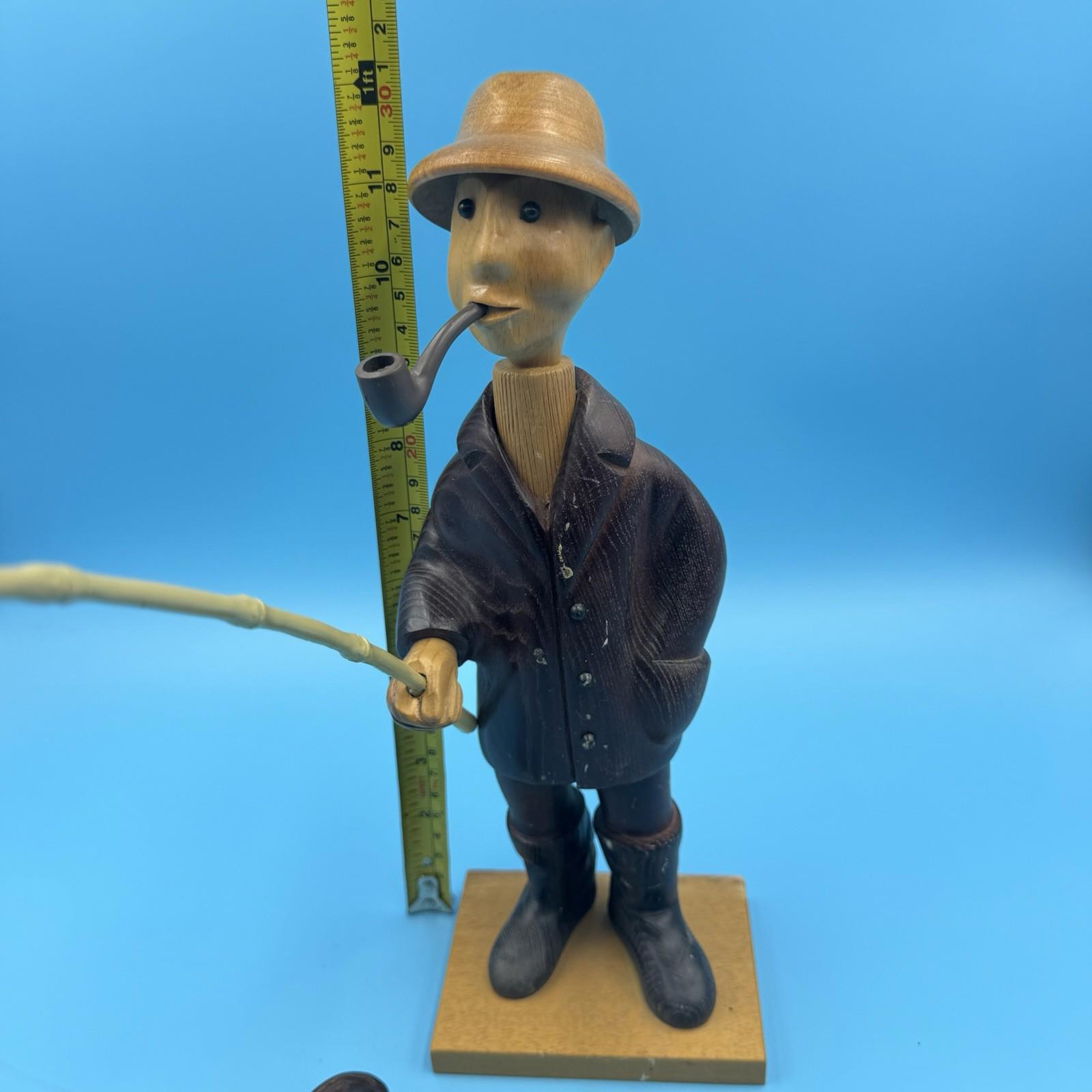 Design Highlights: The fisherman sports a classic floppy hat, a curved pipe clenched in his mouth (intact and detailed)