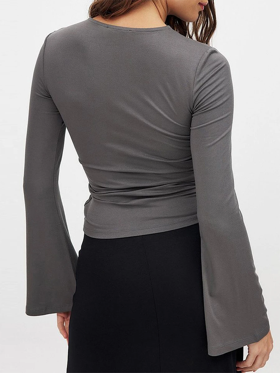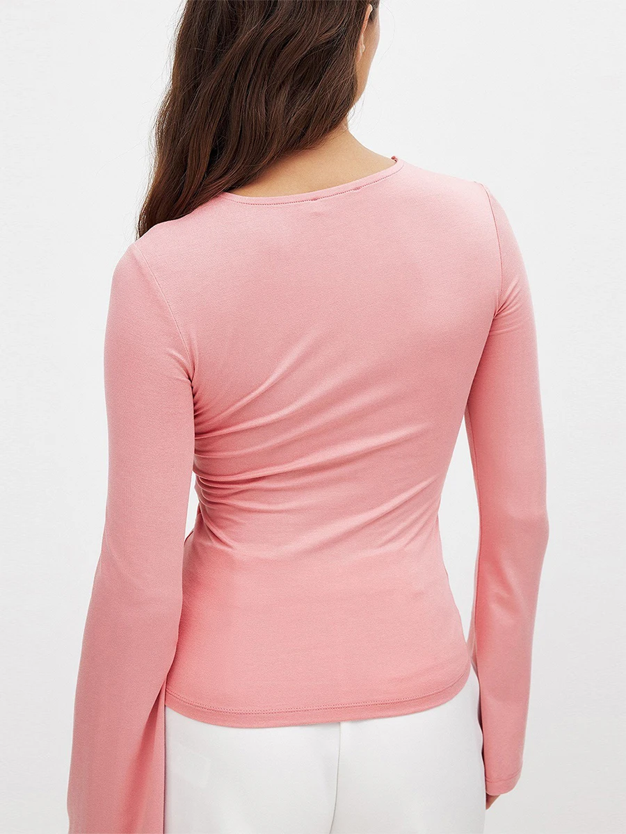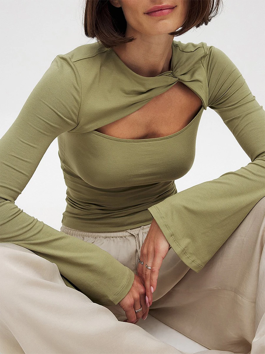 Women's Summer Tops Solid Color Twist Cutout Front Long Sleeve T-Shirt Streetwear