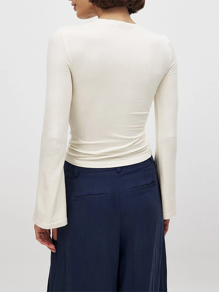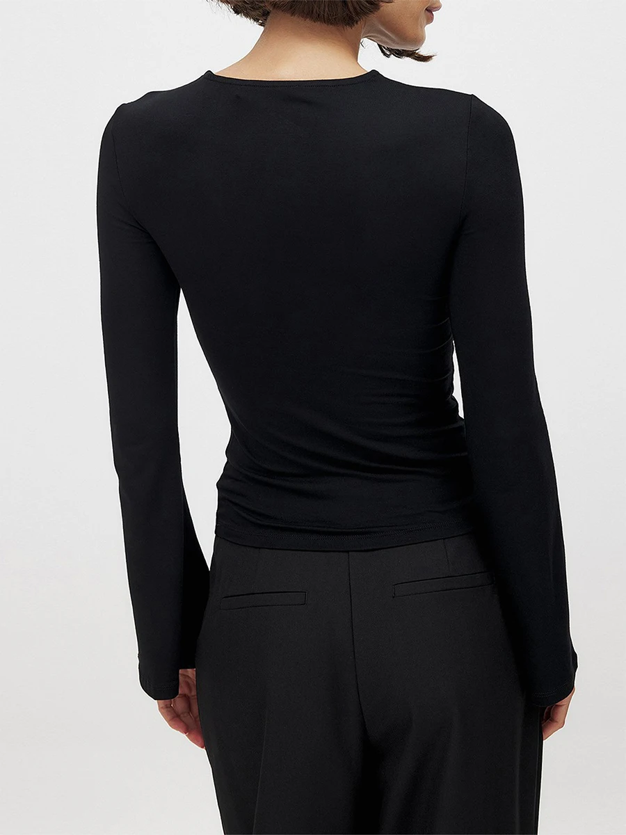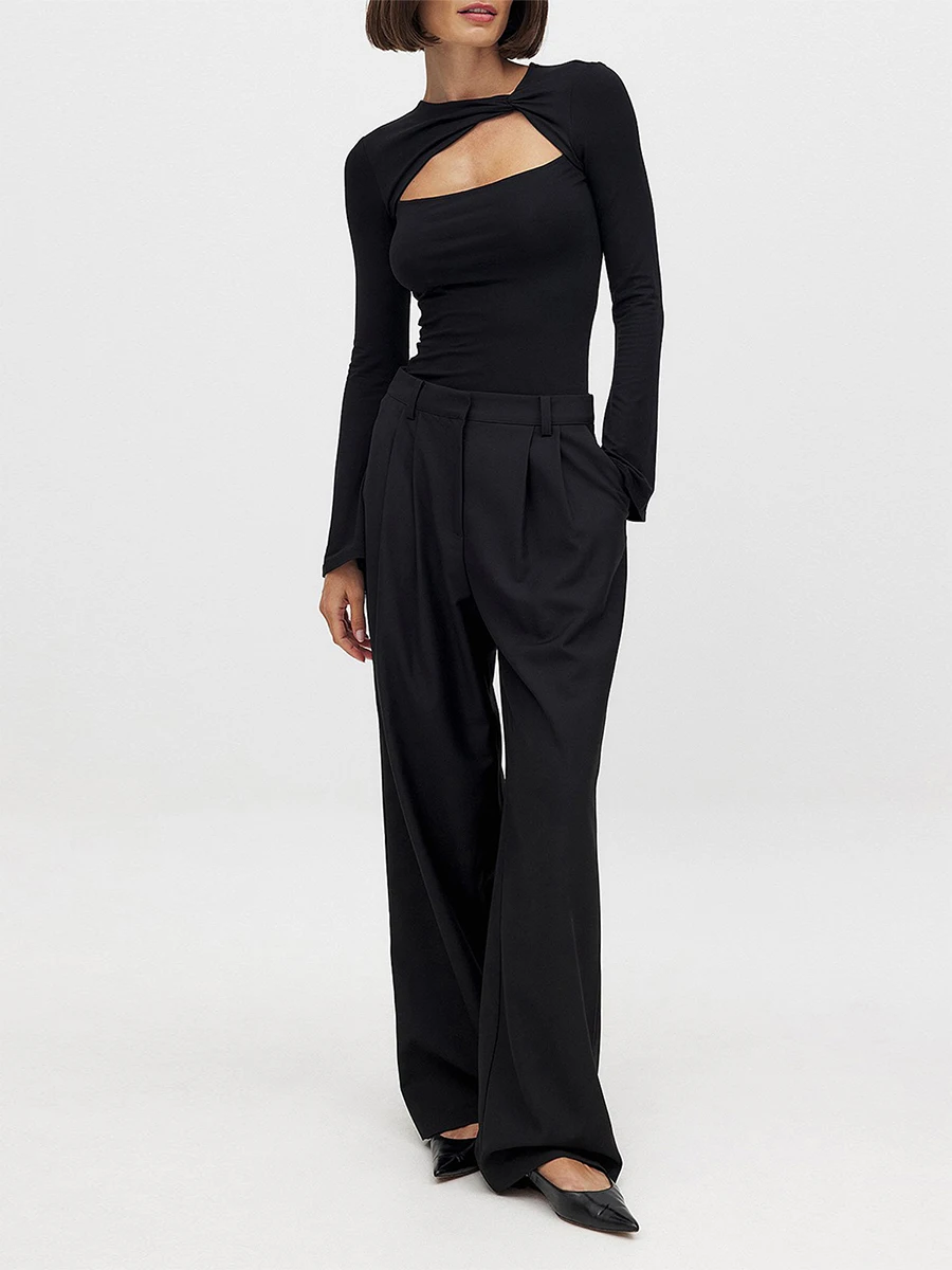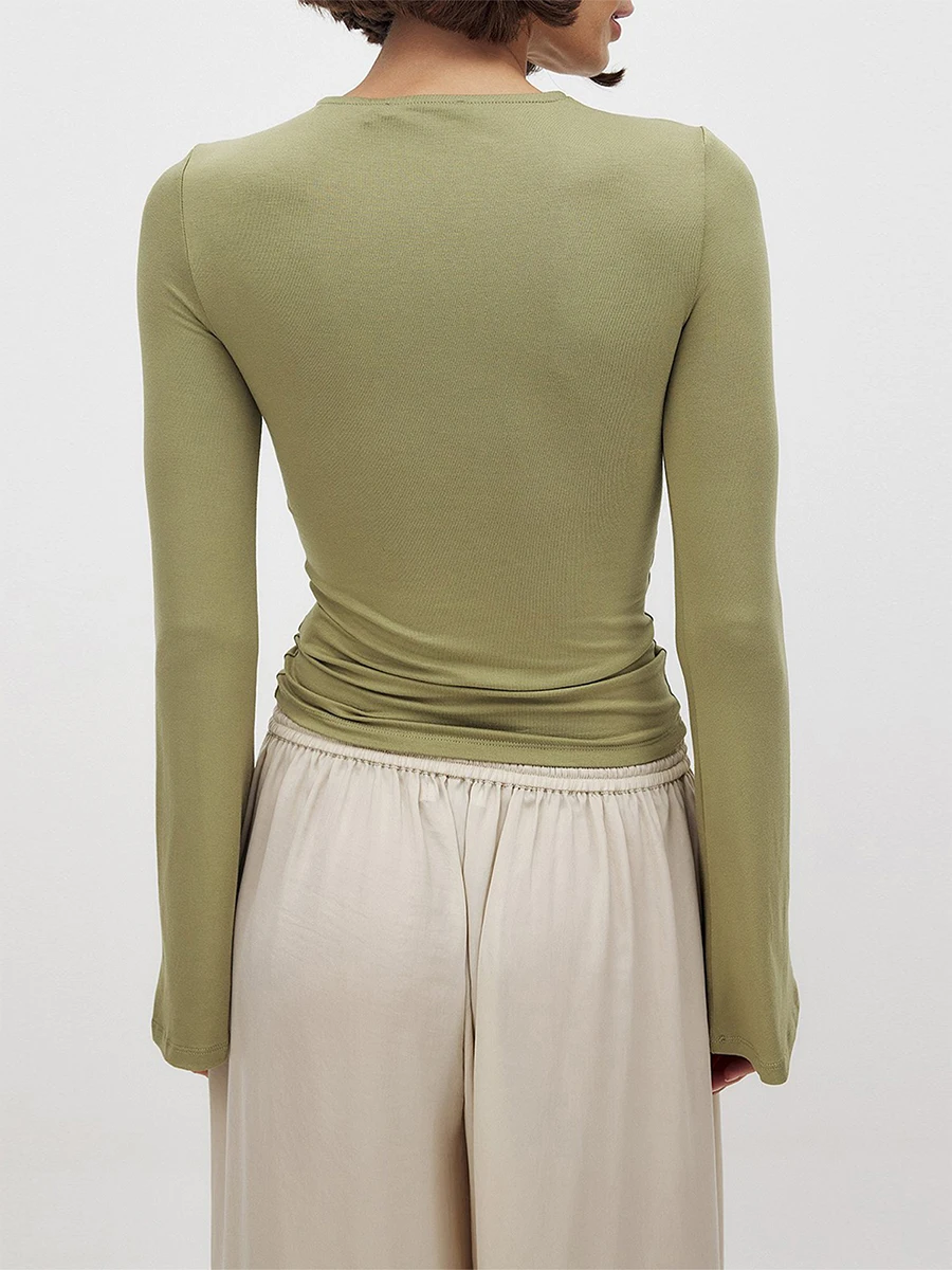 Women's Summer Tops Solid Color Twist Cutout Front Long Sleeve T-Shirt Streetwear