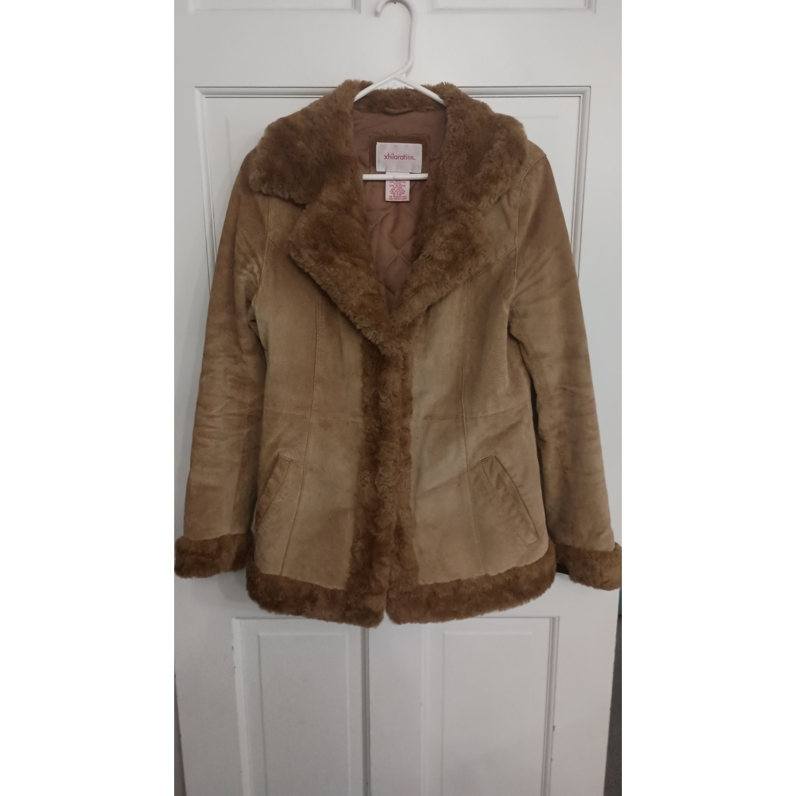 Y2K vintage Xhilaration Brown genuine leather Penny Lane coat. Suede Faux fur trimmed around entire edges and collar, hook eye closure, quality made. Very comfortable and warm. size Medium Women's.